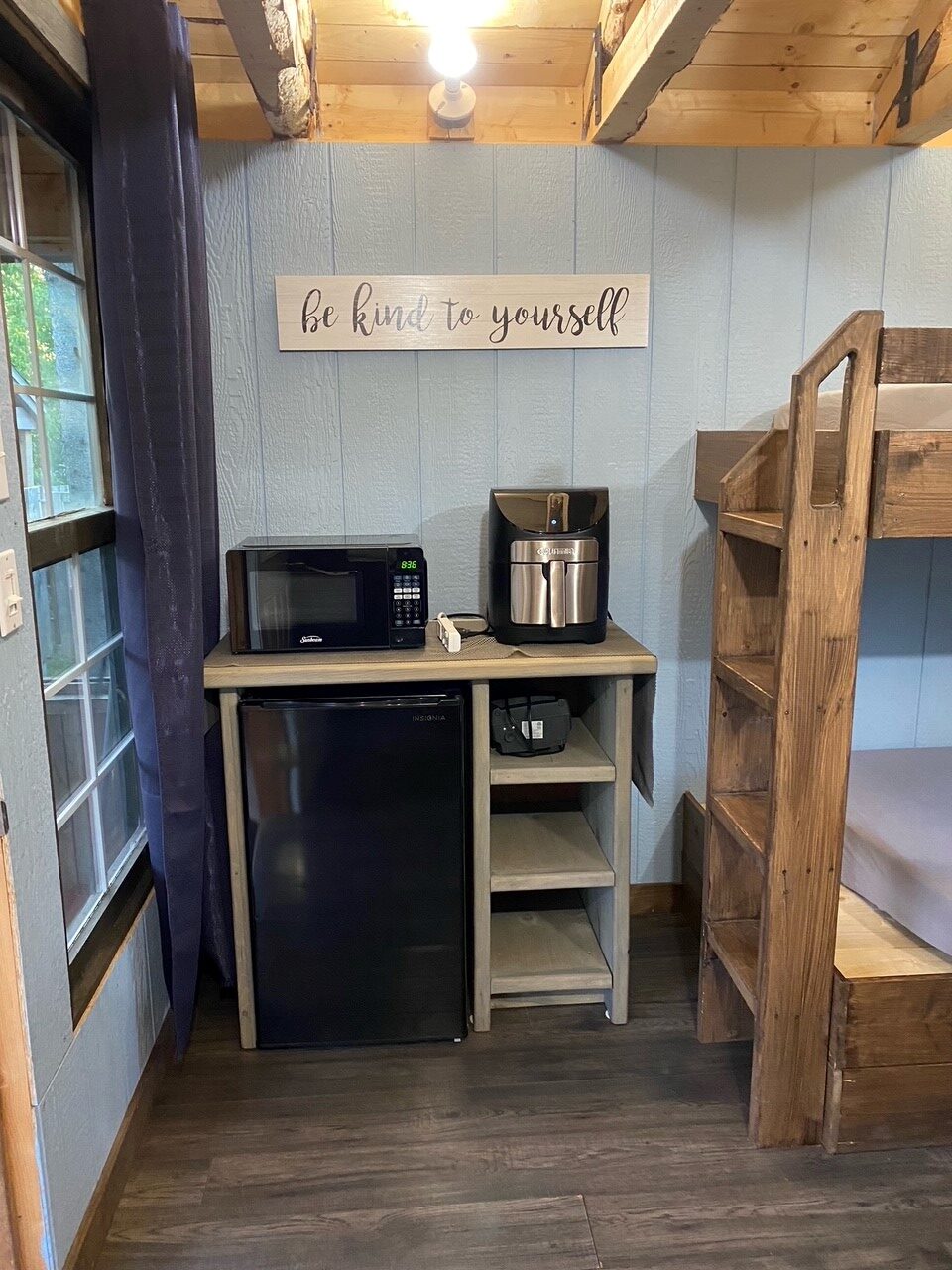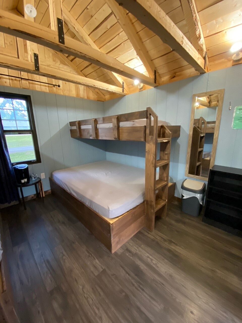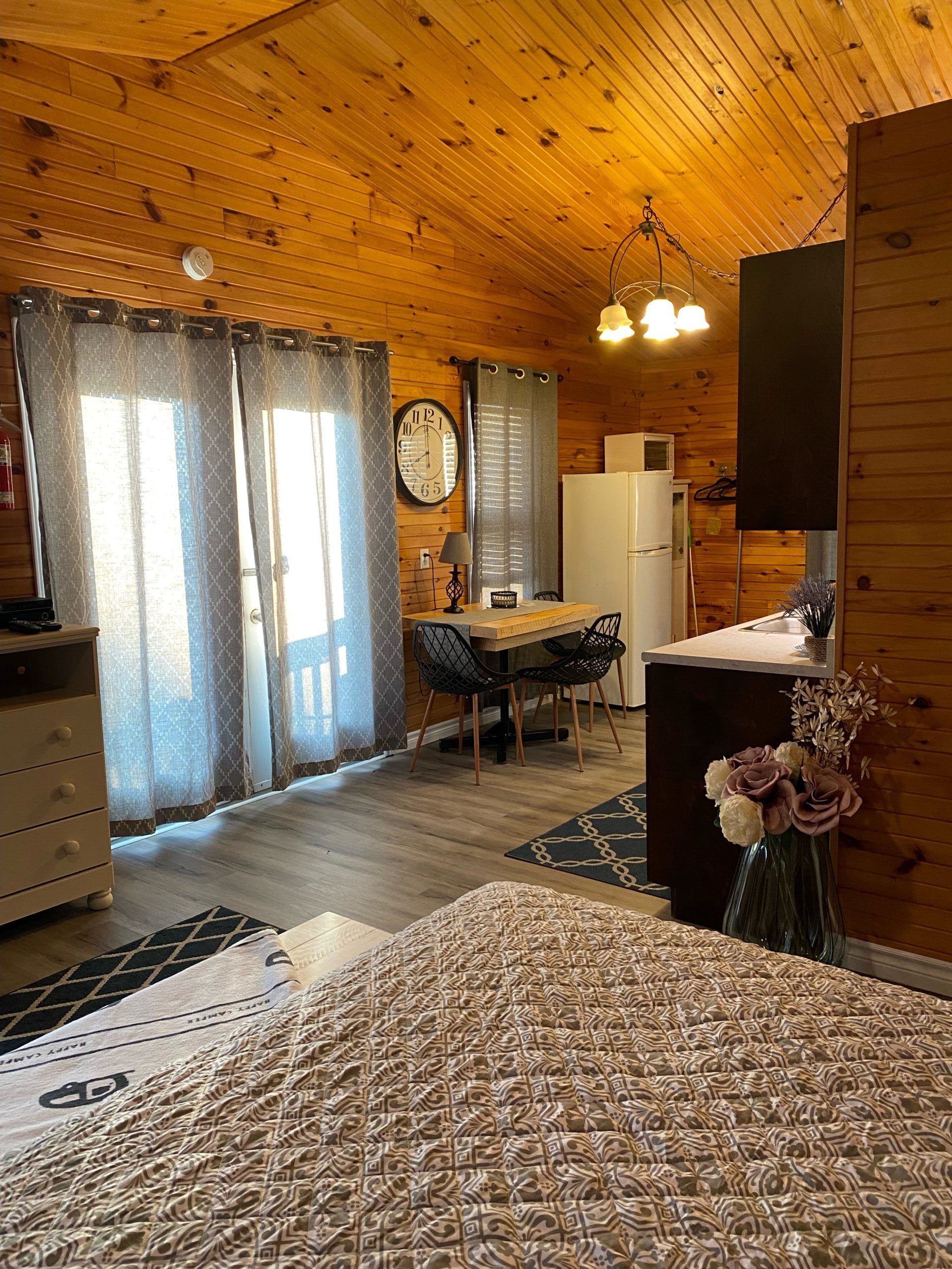 If you love the atmosphere of a campground but like the comforts of a house then your in luck. We offer a one room loft rental so you can experience the best of both worlds. Features: